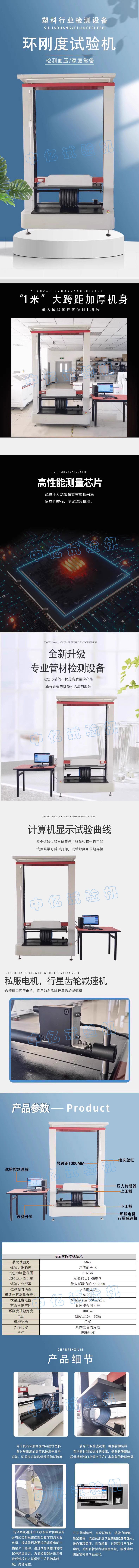 适用于具有环形横截面的热塑性塑料管材环刚度的测定。也适用于扁平试验,环柔度试验和焊缝拉伸试验等。满足PE双壁波纹管、缠绕管和各种塑料管材测试标准的要求,是各科研院所、质量检测部门及管材生产厂家必备的检测仪器。